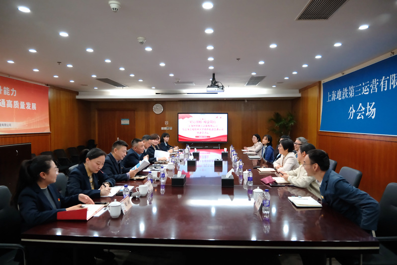 11月7日上午,城市轨道交通学院党政领导班子赴上海地铁第三运营有限公司开展“初心领航·校企同行”党建联建交流会。城市轨道交通学院党委书记万慧琳对运三公司多年来在人才培养、教育教学、科学研究等方面给予学院的支持表示感谢。她提出,校企双方可通过“三联三共“的合作模式,联组共学深化理论学习合作,在师资队伍培养、人才队伍建设等多领域联合共创,以党建引领共同探索人才培养新路径实现联手共育。她强调,后续学院将重点推进人才培养、双师型队伍建设等工作,实现校企双方全方位战略合作伙伴关系。上海工程技术大学客座教授叶华平指出,校企双方通过党建联建共建,进一步固化机制明确合作框架与责任分工,为协同发展提供坚实保障。在人才培养方面,要聚焦企业文化浸润与实操技能提升,通过企业导师进校园、共建实践课堂等方式,让学生提前熟悉行业规范、夯实技能基础,实现人才培养与企业需求的精准对接,推动校企合作向更深层次迈进。运三公司党委书记、副总经理杨锋权对学院此次到访表示欢迎并对运三公司的党建引领、企业概况、强基固本、人才培养等方面做详细介绍。他指出,企校双方应围绕中心工作发挥各自优势,在党建引领下实现共同发展、共同成长。当前公