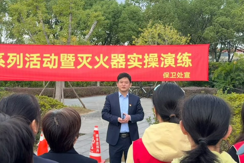 本月为我国第34个全国“消防安全宣传月”,主题为“全民消防,生命至上一一安全用火用电”。2025年11月6日上午,上海工程技术大学“119”消防宣传月启动仪式在体育馆北侧举行。保卫部(处)长袁富良、副部(处)长王镇,保卫处全体干部,保安队伍,后勤实业中心宿管、维修等物业代表及平安志愿者代表等百余人参加。袁富良致辞并宣布2025年“119”消防宣传月系列活动正式启动。他阐释了消防安全宣传月的主旨及深刻意义,强调全校师生携手积极推动校园安全管理从“被动应对”向“主动预防”策略性转变,号召每一个人都成为校园安全的“前哨兵”,共同筑牢安全防线。王镇通报了消防宣传月系列活动安排,代表保卫处倡议,关注好、维护好我们身边良好的消防安全环境,消除安全隐患,共筑校园消防安全防火墙。现场消防技能实操环节,消防科科长吴挺进行了干粉灭火器的专业讲解与标准演示。紧随其后的“灭火器扑救初期火灾”实战演练,让师生代表得以亲身体验。整个过程井然有序,有效展示了学校在火灾初期处置、灭火器操作等方面的常态化培训成果,实现了“以练促防、学以致用”的预期目标。为全面提升全体师生员工的消防安全意识,学校保卫处精心筹备了形式多样